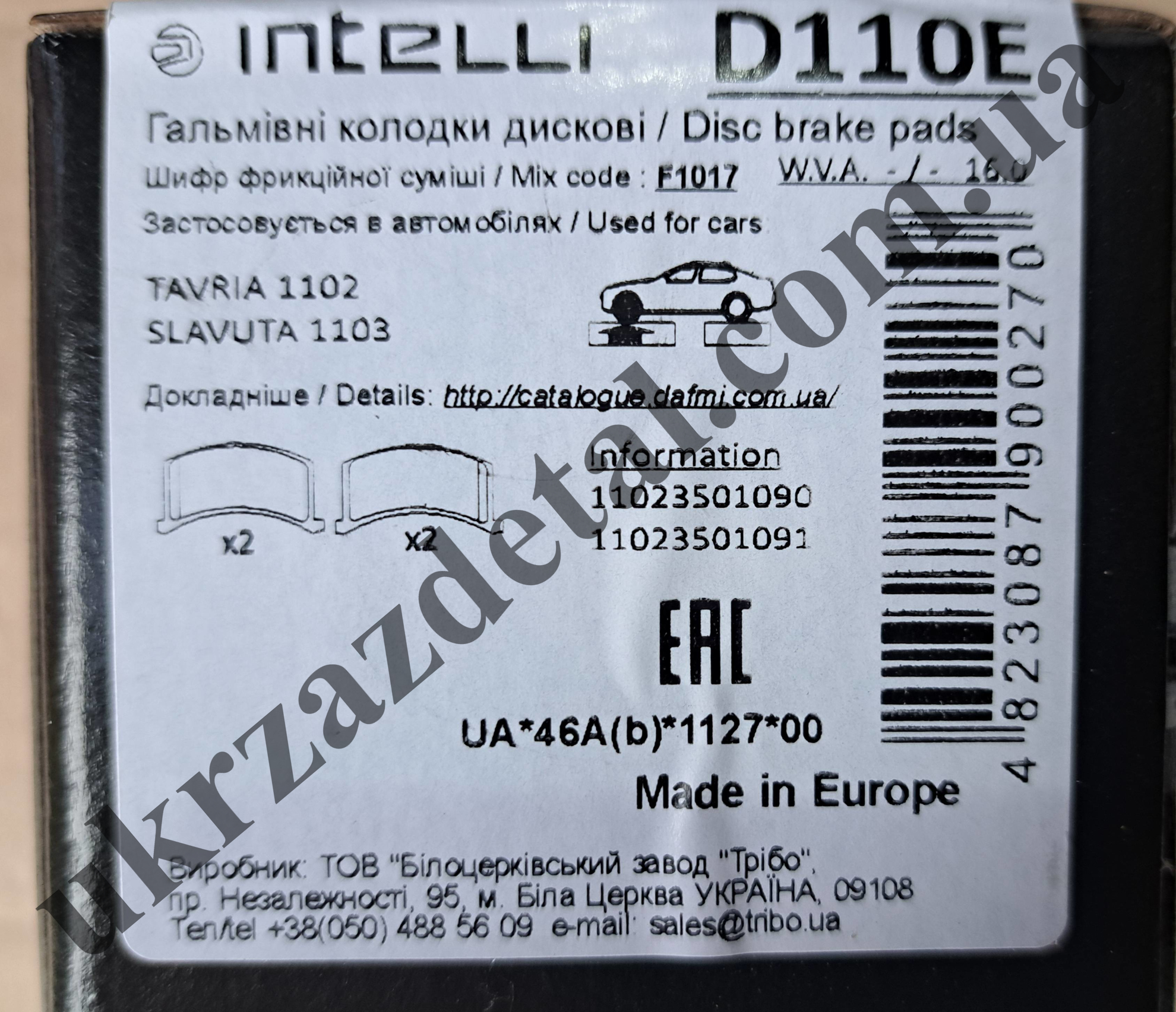 Колодки гальмівні передні. Добре підходять для їзди в гірській місцевості, при постійній їзді з причепом. Ц ена за комплект - 4 штуки. Підходить на автомобіль: Таврия 1102, Славута 1103, Пікап 110550. Виробник: Dafmi INTELLI (Дафмі) м Дніпро. Нова лінійка класу "преміум" ТМ INTELLI. Вся продукція випускається на основі діскосберегающіх технологій (збереження гальмівного диска)фрикційний шар колодок INTELLI не залишає продуктів зносу на колісних дисках. Номер: 1102-3501090 / 1102-3501091, D110E