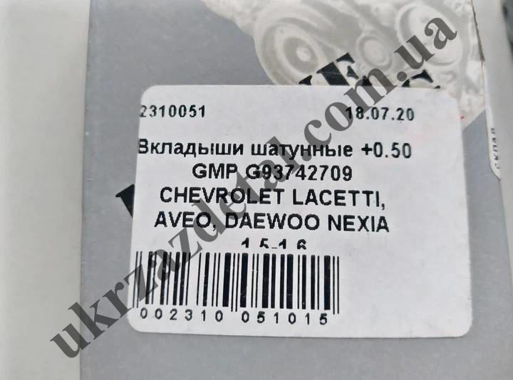 Вкладыши шатунные 0,5 Ланос Авео Лачетти GMP 93742709