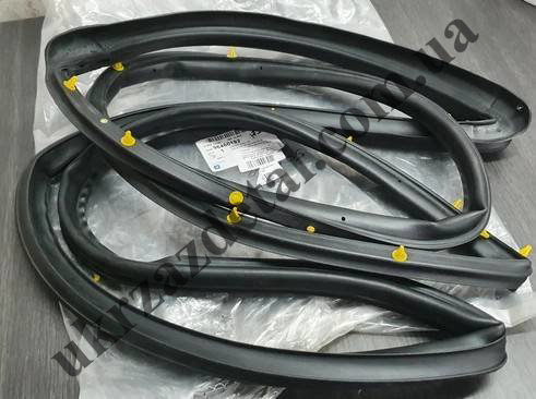 Ущільнювач двері передньої правої (по дверях) суцільний з кліпсами. Підходить на автомобіль: Авео седан и хетчбек 4 двері Т-250/Т-255, ЗАЗ-Віда. Виробник: GM. Номер: 94790531, 96541711